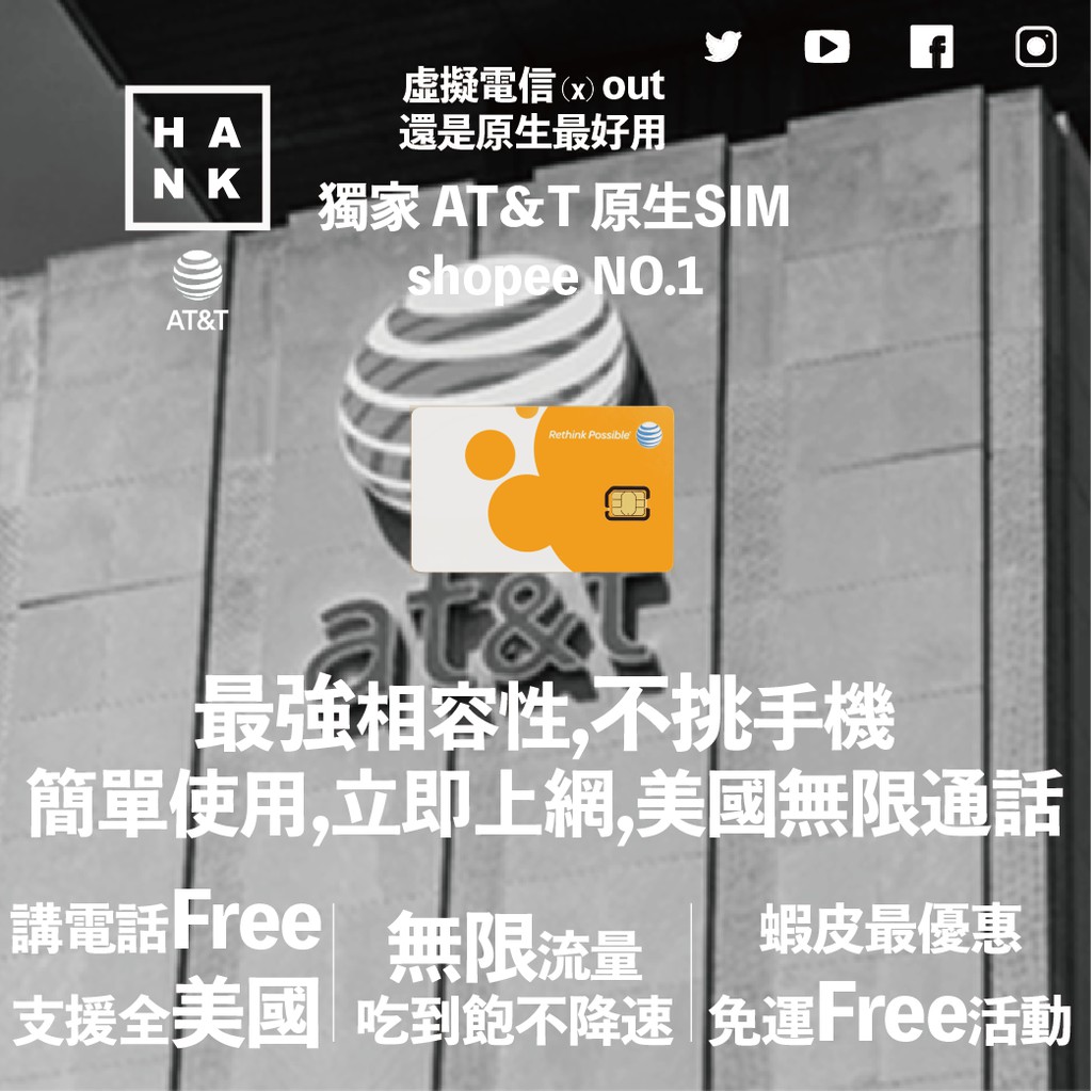 Sim卡 At T美國網路及電話吃到飽 7 10 15 20天