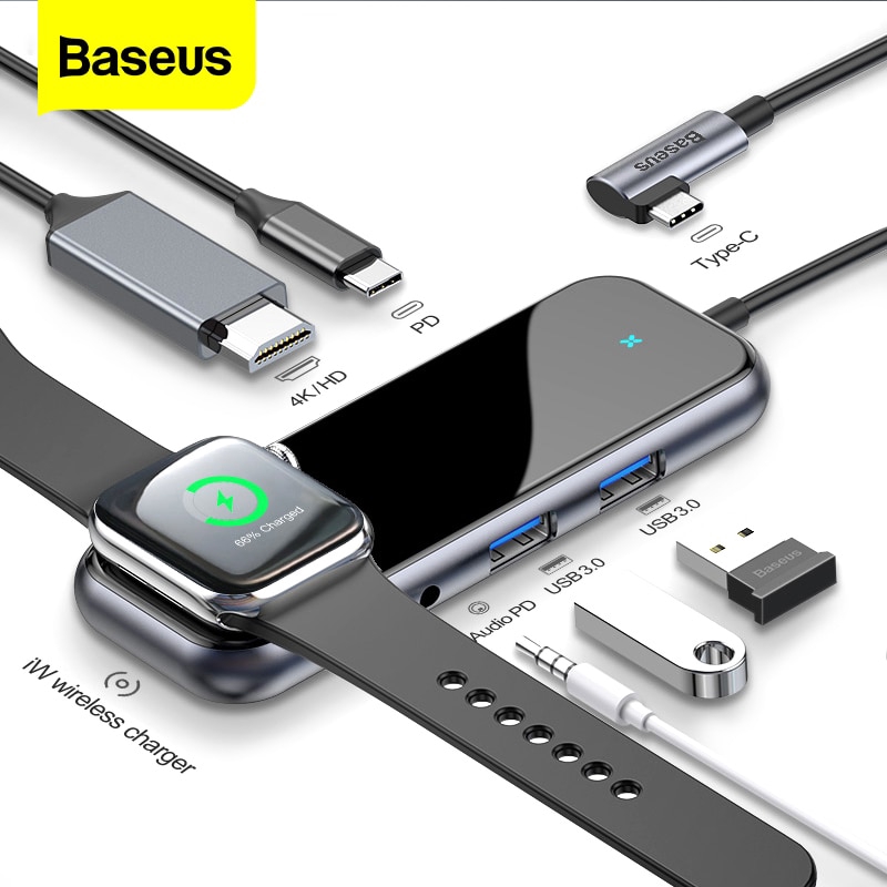 Baseus Usb C Type C Hub To Hdmi Rj45 Multi Usb 3 0 Adapter For Macbook Pro Air Dock Usb C Hub With Wireless Charger For Iwatch Lazada Singapore