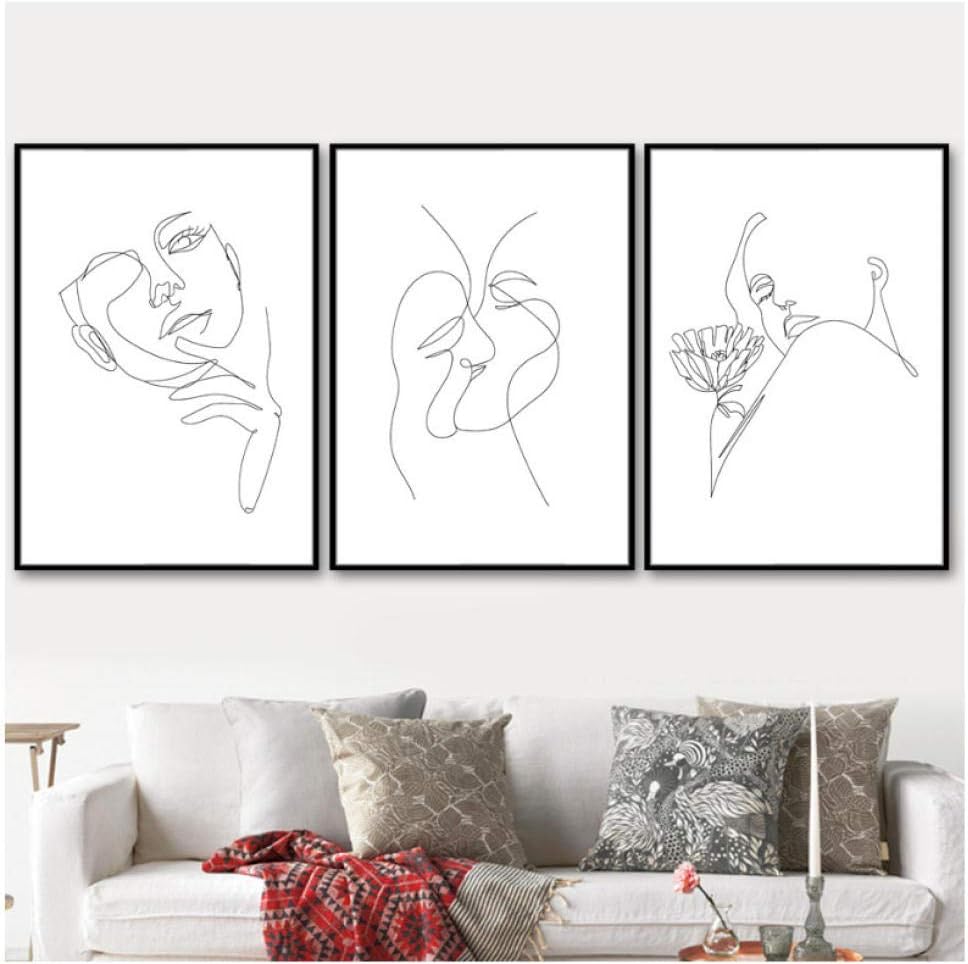 Jhct Black White Line Wall Art Canvas Painting Nordic Posters And Prints Wall Pictures For Living Room Home Decor 40x60cmx3 Pcs Frameless Amazon Co Uk Kitchen Home