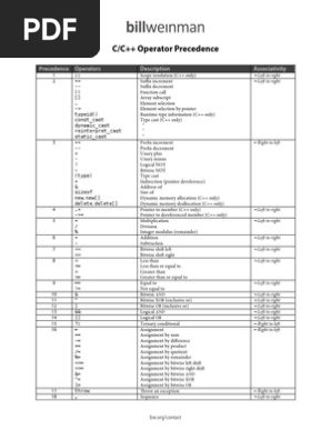 C Operator Precedence Table Pdf Archives Myfstech Com
