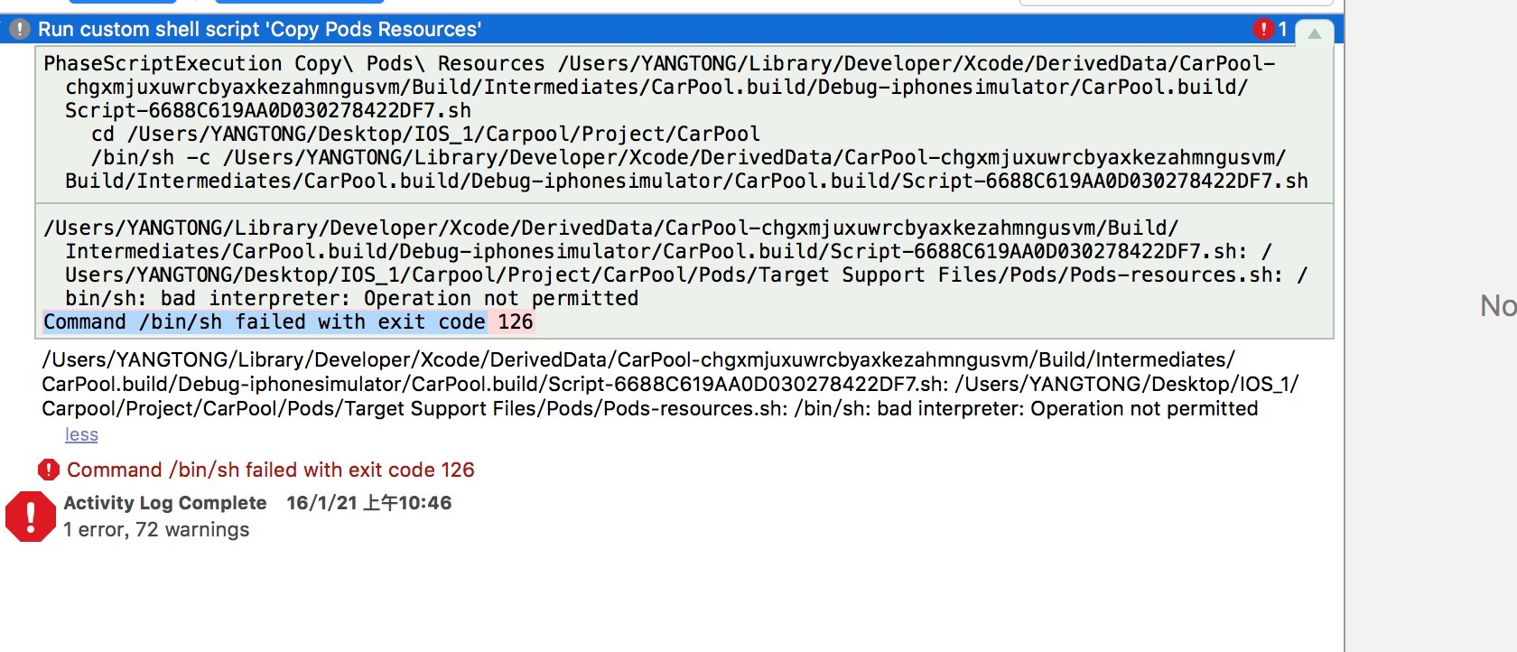 Command Bin Sh Filed With Exit Code 126 Ios Yangt的博客 Csdn博客