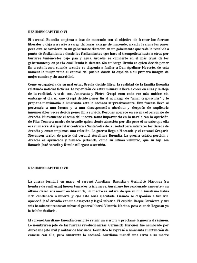 Cien Anos De Soledad Cap 6 7 Resumenes Jaimemarina