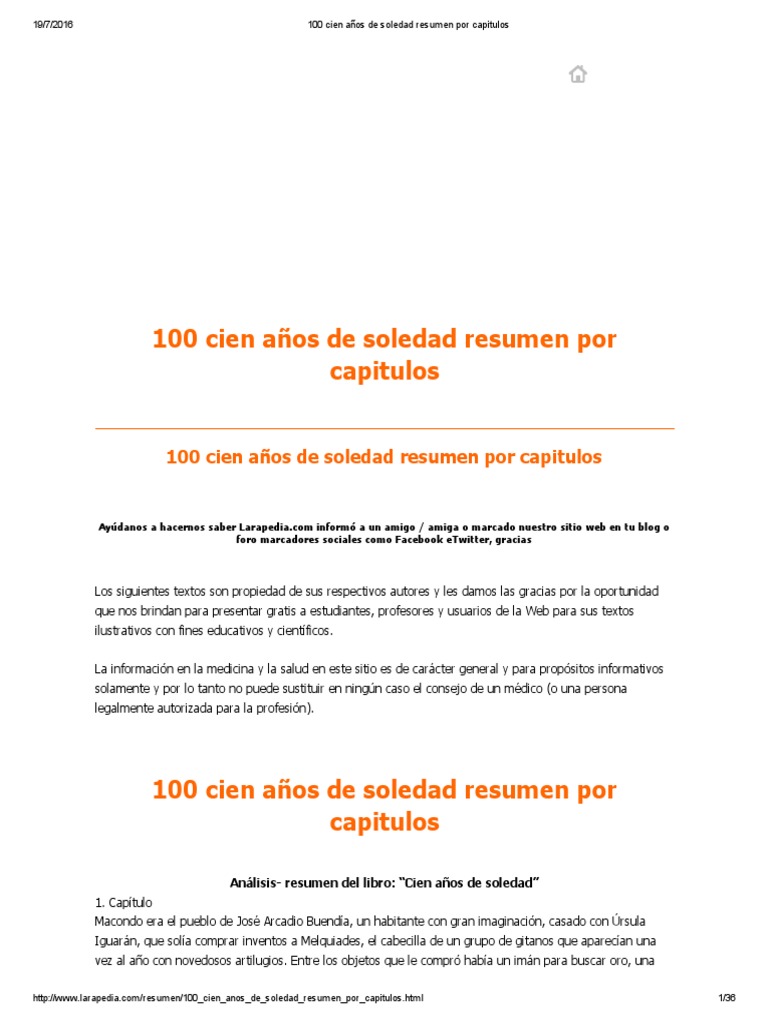 Resumen De Cien Anos De Soledad Por Paginas