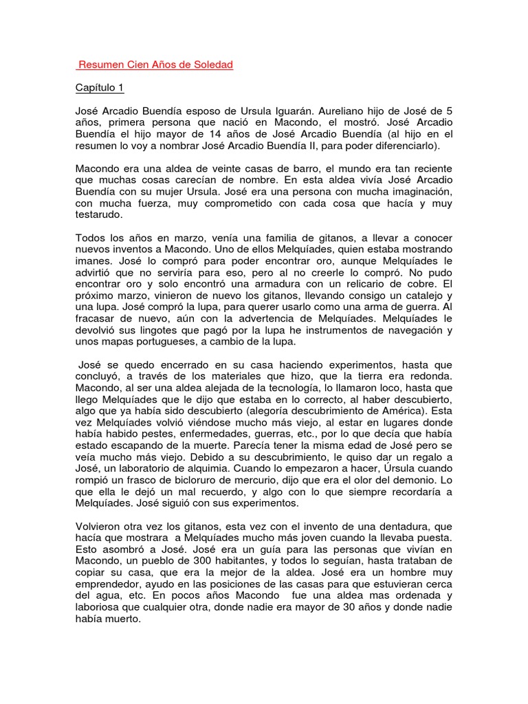 Doc Resumen Cien Anos De Soledad Capitulo 1 Jose Arcadio Buendia Esposo De Ursula Iguaran Sandra Torres Academia Edu