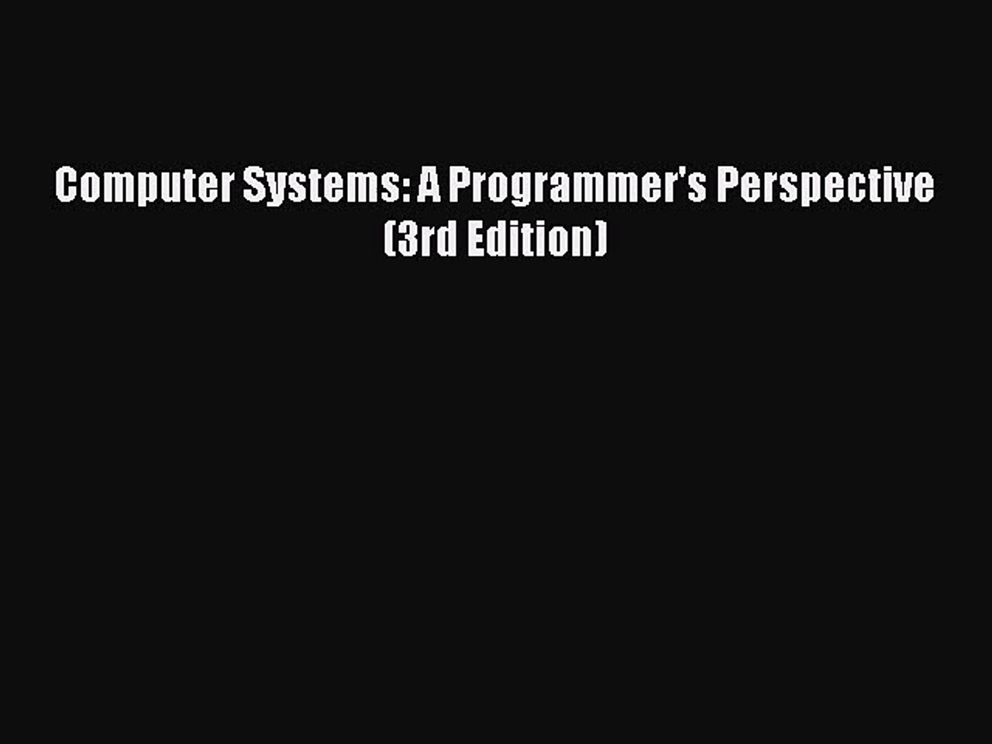 Pdf Download Computer Systems A Programmer S Perspective 3rd Edition Download Online Video Dailymotion